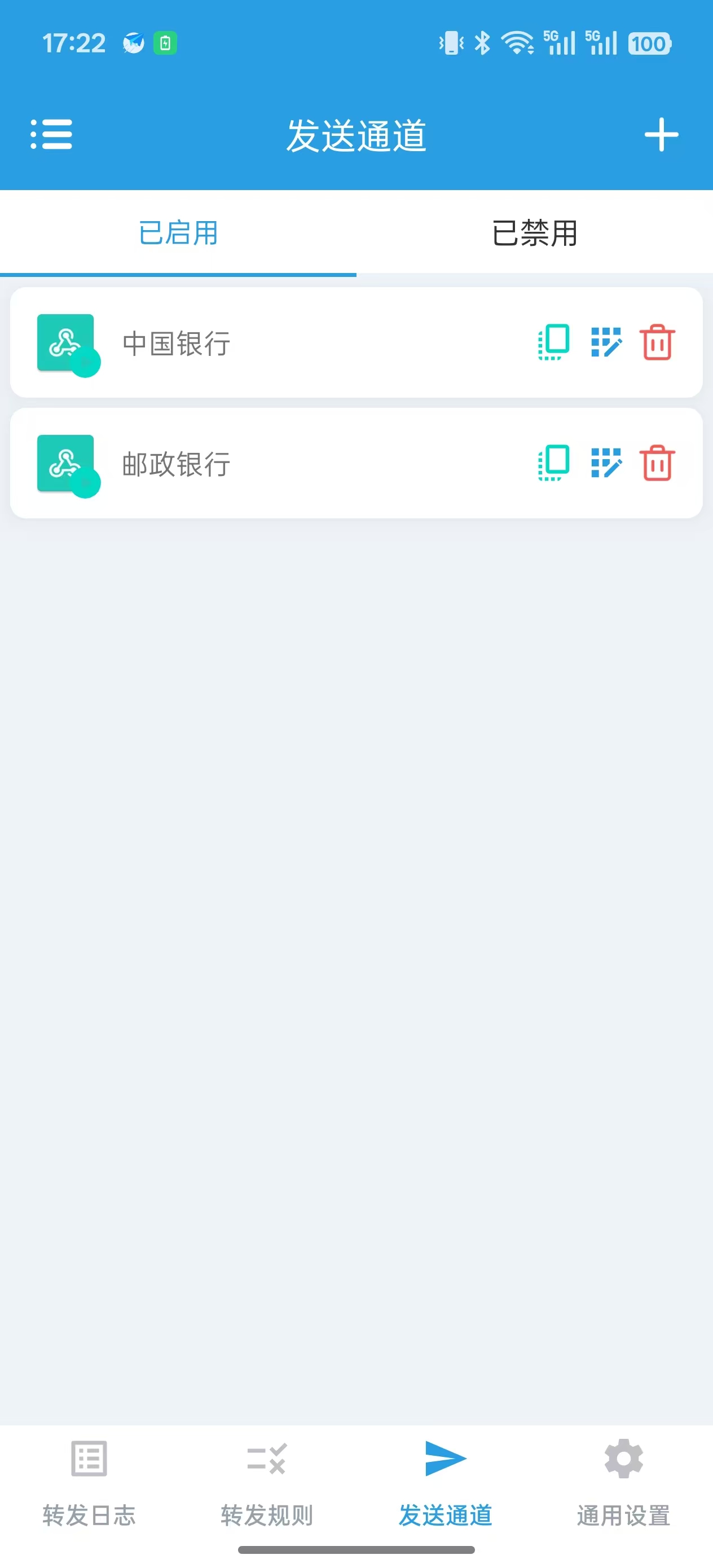 点击右上角的加号创建新的发送通道,创建完记得保存。